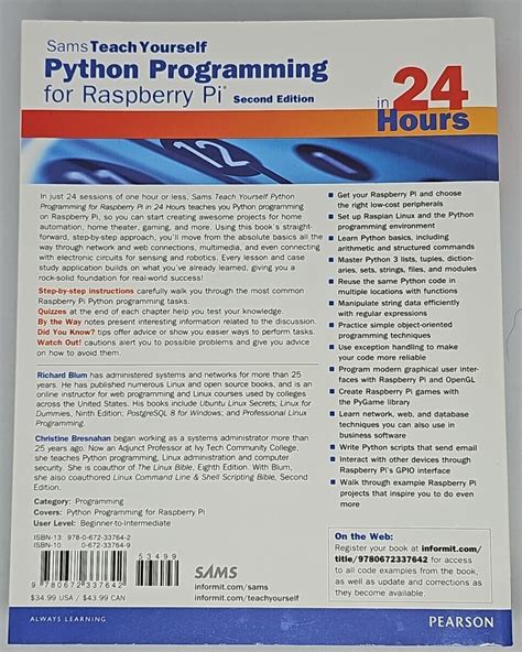 Read Python Programming for Raspberry Pi - Sams Teach Yourself in 24 Hours Epub By Click Button. Python Programming for Raspberry Pi - Sams Teach Yourself in 24 Hours it’s easy to recommend a new book category such as Novel, journal, comic, magazin, ect. You see it and you just know that the designer is also an author and understands the challenges involved with having a good book. You can easy klick for detailing book and you can read it online, even you can download it