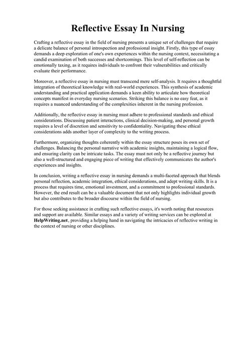 Read Online nursing placement reflective essay Doc